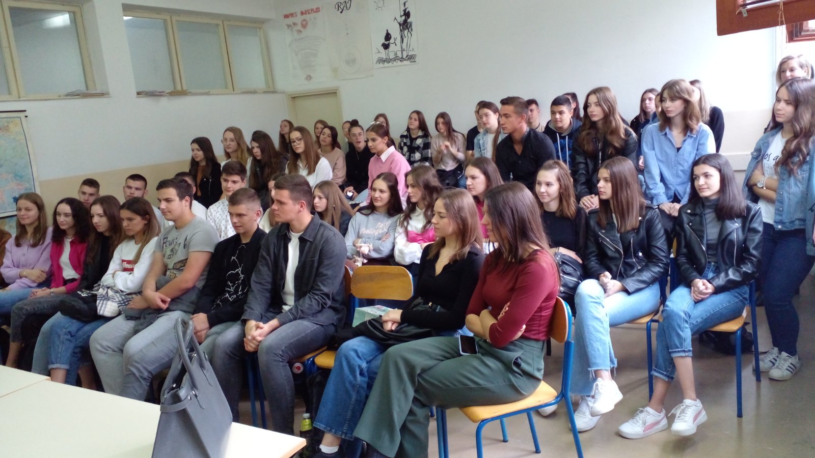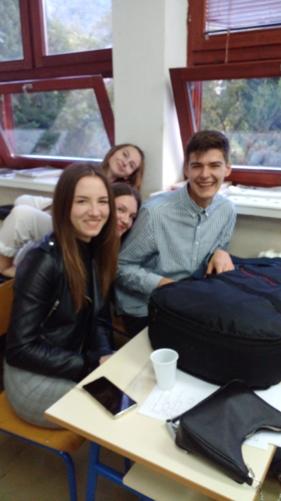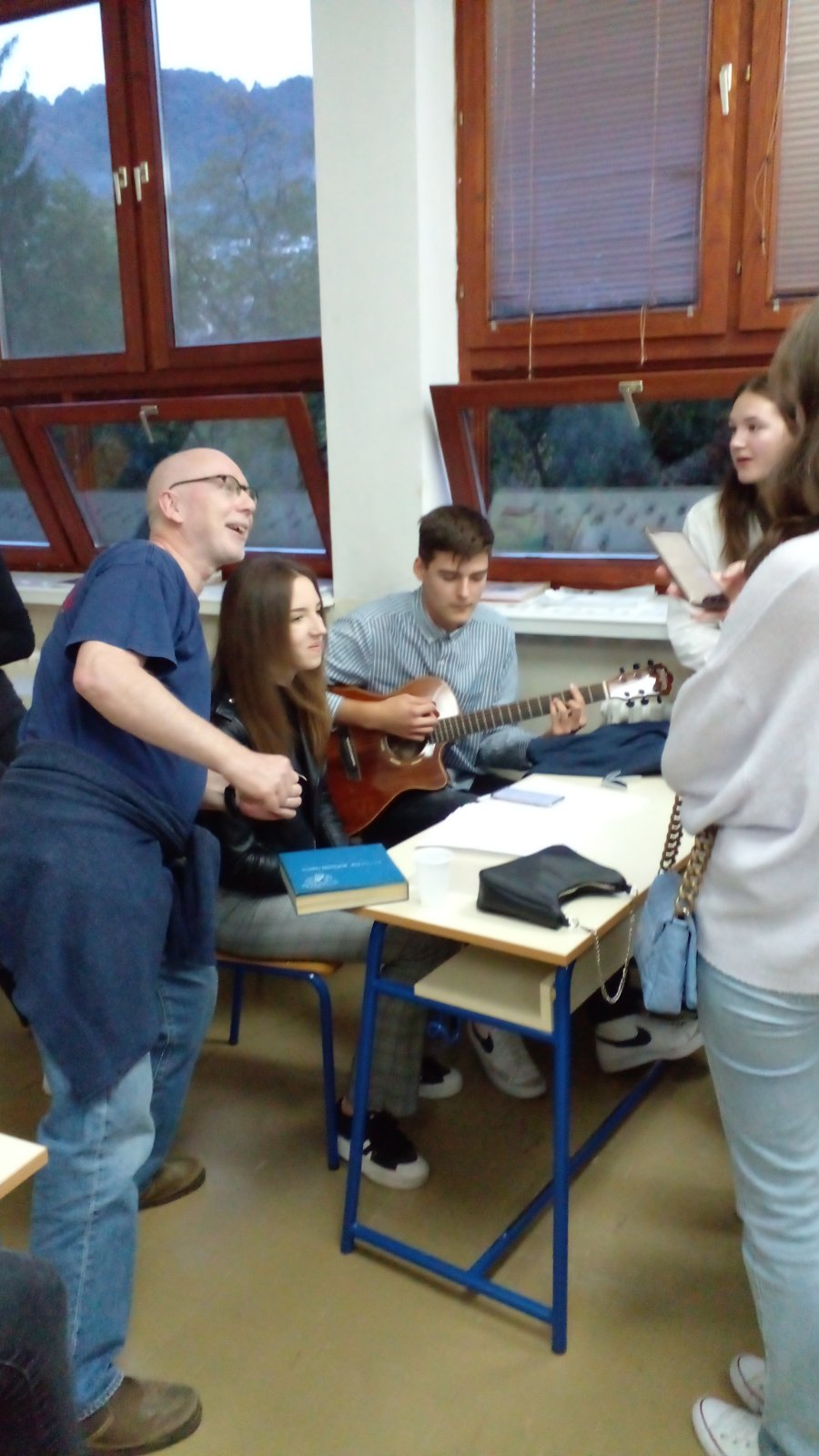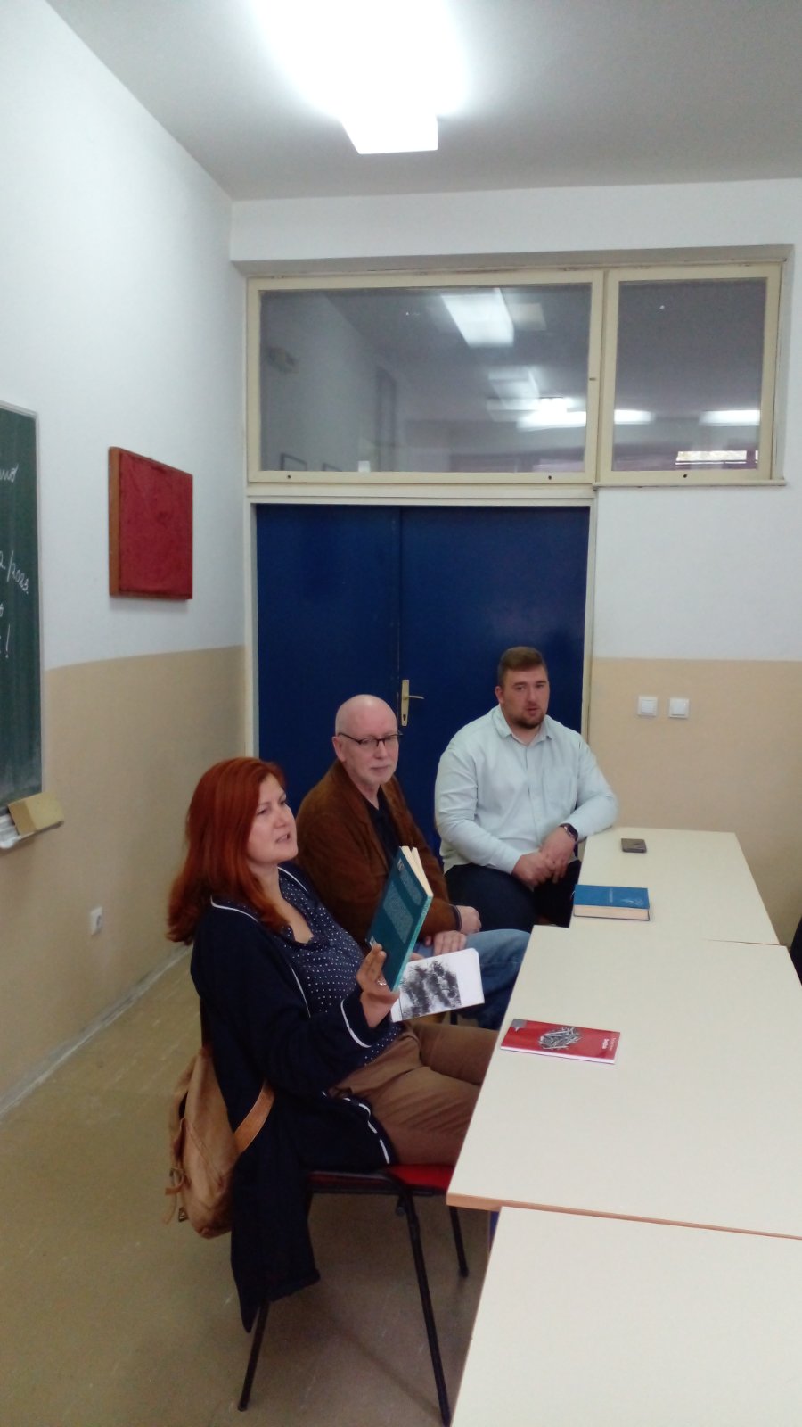 Gospodin Koštro nam je i jutros došao u goste,ali ovaj put sa spisateljicom Tanjom Stupar Trifunović. Razgovarali su s našim gimnazijalcima,koji su upijali svaki pročitani stih,a postavljali su našim gostima i pitanja o njihovu radu,položaju pisaca u našoj državi,poteškoćama na koje nailaze. Na sva pitanja gosti su rado odgovorili. Kratak je za to druženje bio samo jedan školski sat.