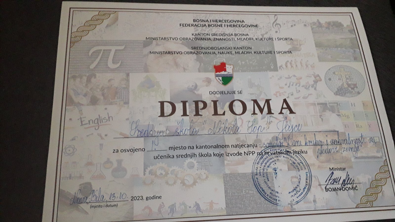Županijska smotra ” Dani kruha i zahvalnost za plodove zemlje”Učenici Srednje škole su pod mentorstvom profesorice Biljane Svirač osvojili prvo mjesto na županijskoj smotri ” Dani kruha i zahvalnost za plodove zemlje” koja je održana u Novoj Biloj 13.listopada.